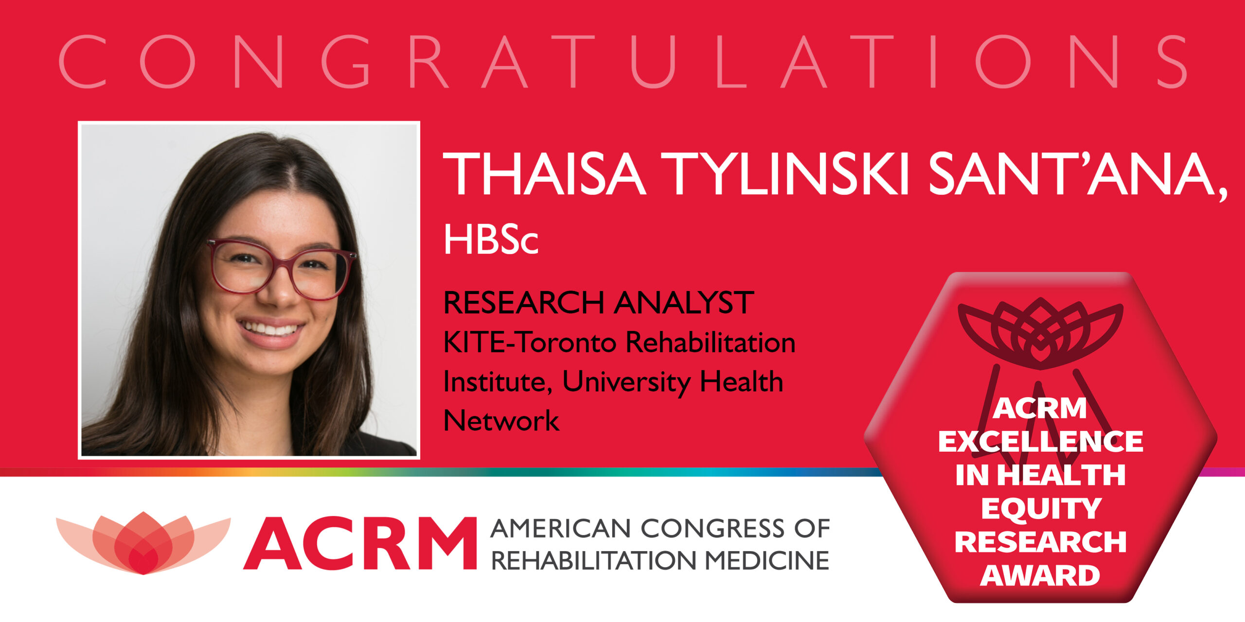 The ACRM Awards Committee is pleased to honor Thasia Tylinski Sant’ana, HBSc with the ACRM Excellence in Health Equity Research Award