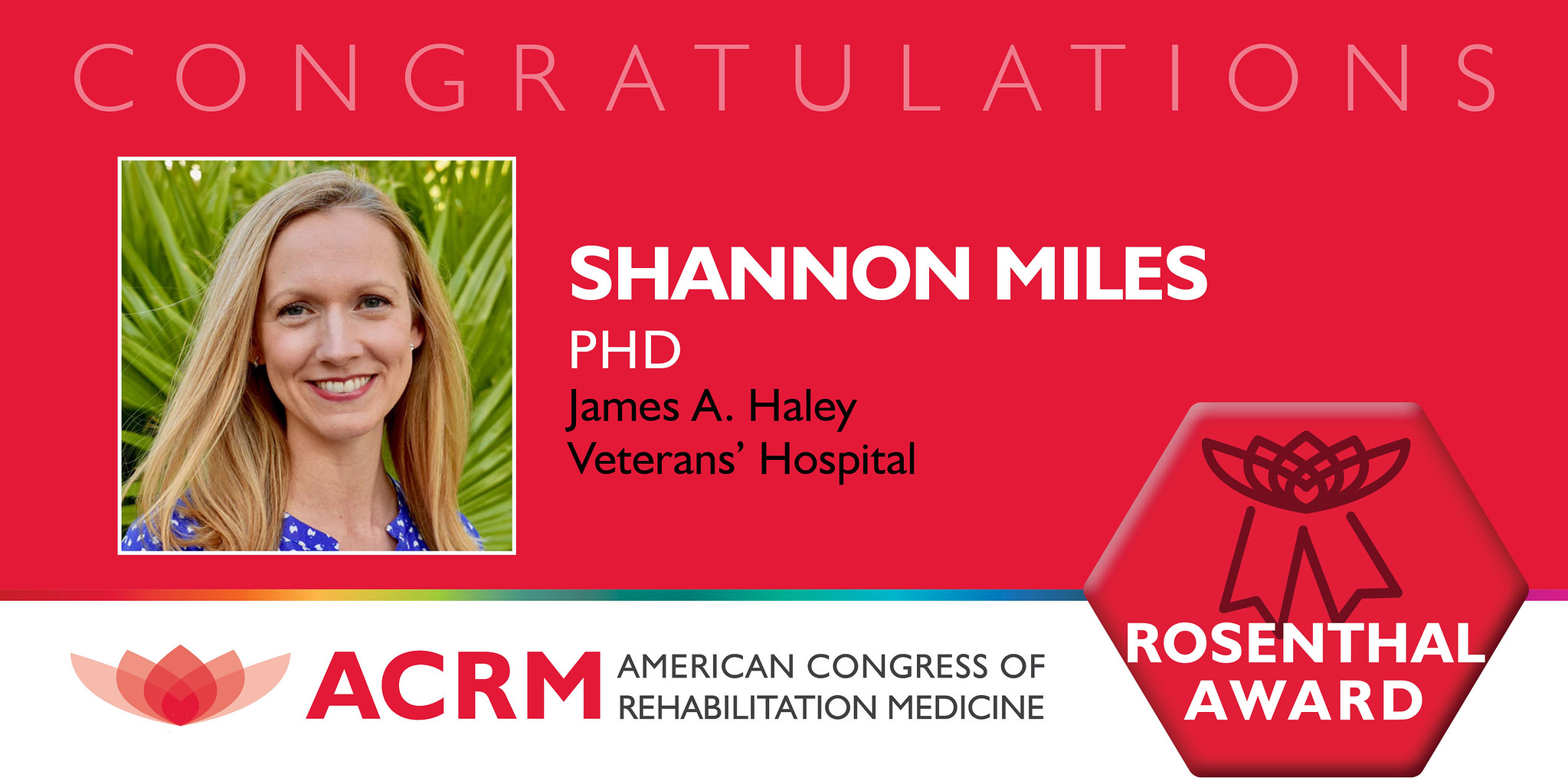 ACRM is pleased to honor Shannon Miles, MPhD with the 2023 Mitchell Rosenthal Mid-Career Award in recognition of her leadership and contributions to the field of brain injury rehabilitation research.