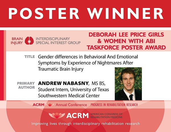 Congratulations to the following winners of the BI-ISIG outstanding poster awards. These posters were presented during the ACRM 95th Annual Conference, 30 September – 3 October, in Dallas.