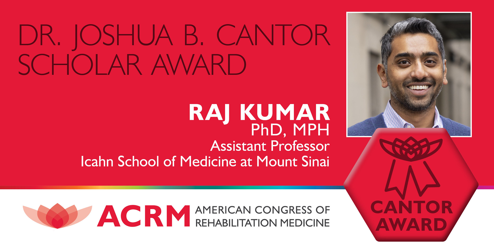 The BI-ISIG is pleased to honor Raj Kumar, PhD, MPH with the 2025 Joshua B. Cantor Scholar Award. To be selected for the Cantor Award is to be recognized as a professional whose work embodies the spirit of Dr. Cantor’s endeavors and achievements, which aimed to provide solace, meaning, and hope to individuals with TBI.