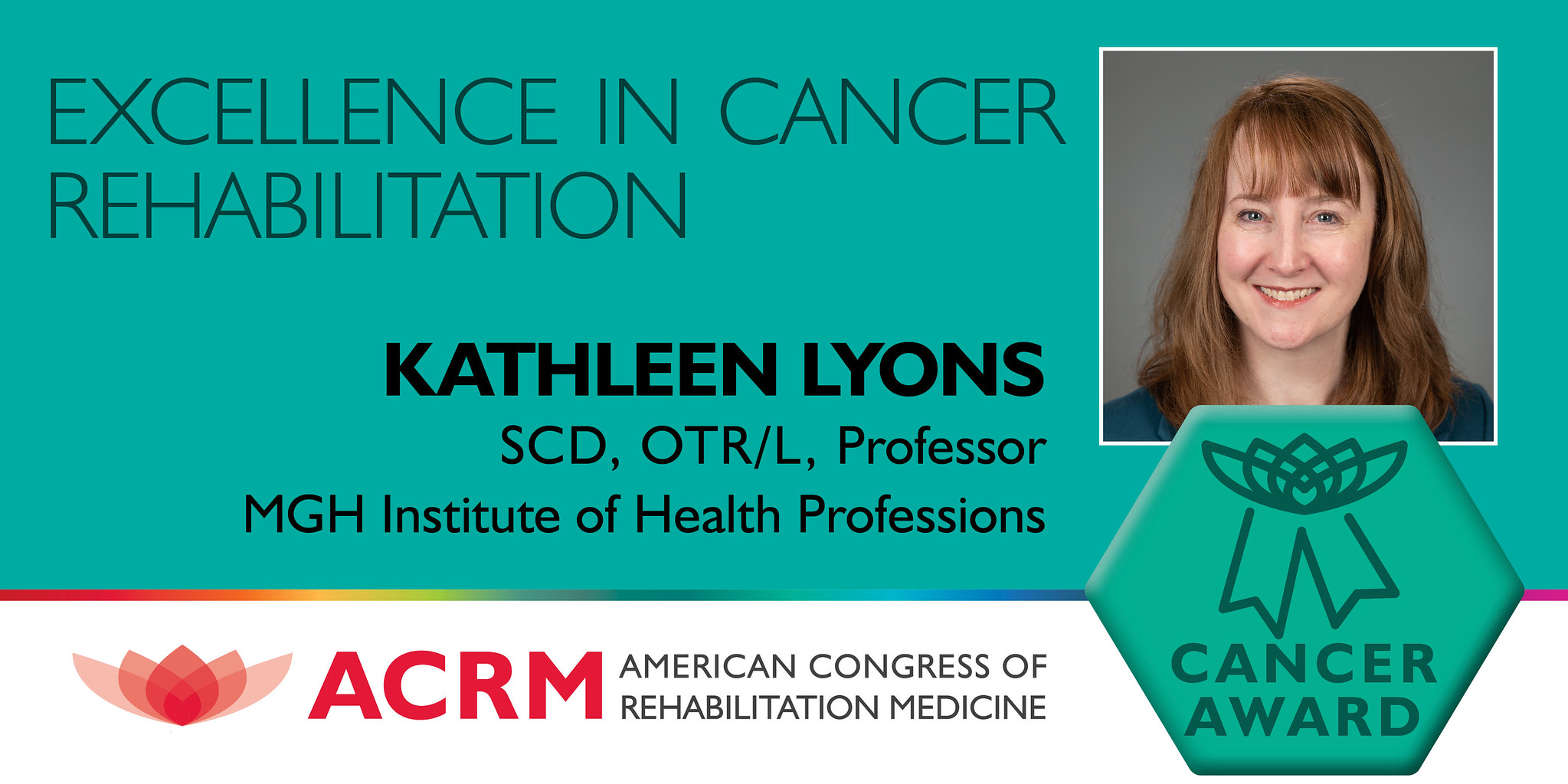 The 2023 Excellence in Cancer Rehabilitation Award recognizes Kathleen Lyons, ScD, OTR/L for the important contributions he has made to the field of cancer rehabilitation medicine. This award will be presented during the Cancer Rehabilitation Networking Group Business meeting at the ACRM 2023 Annual Conference in. Please join us in congratulating him for this outstanding achievement.