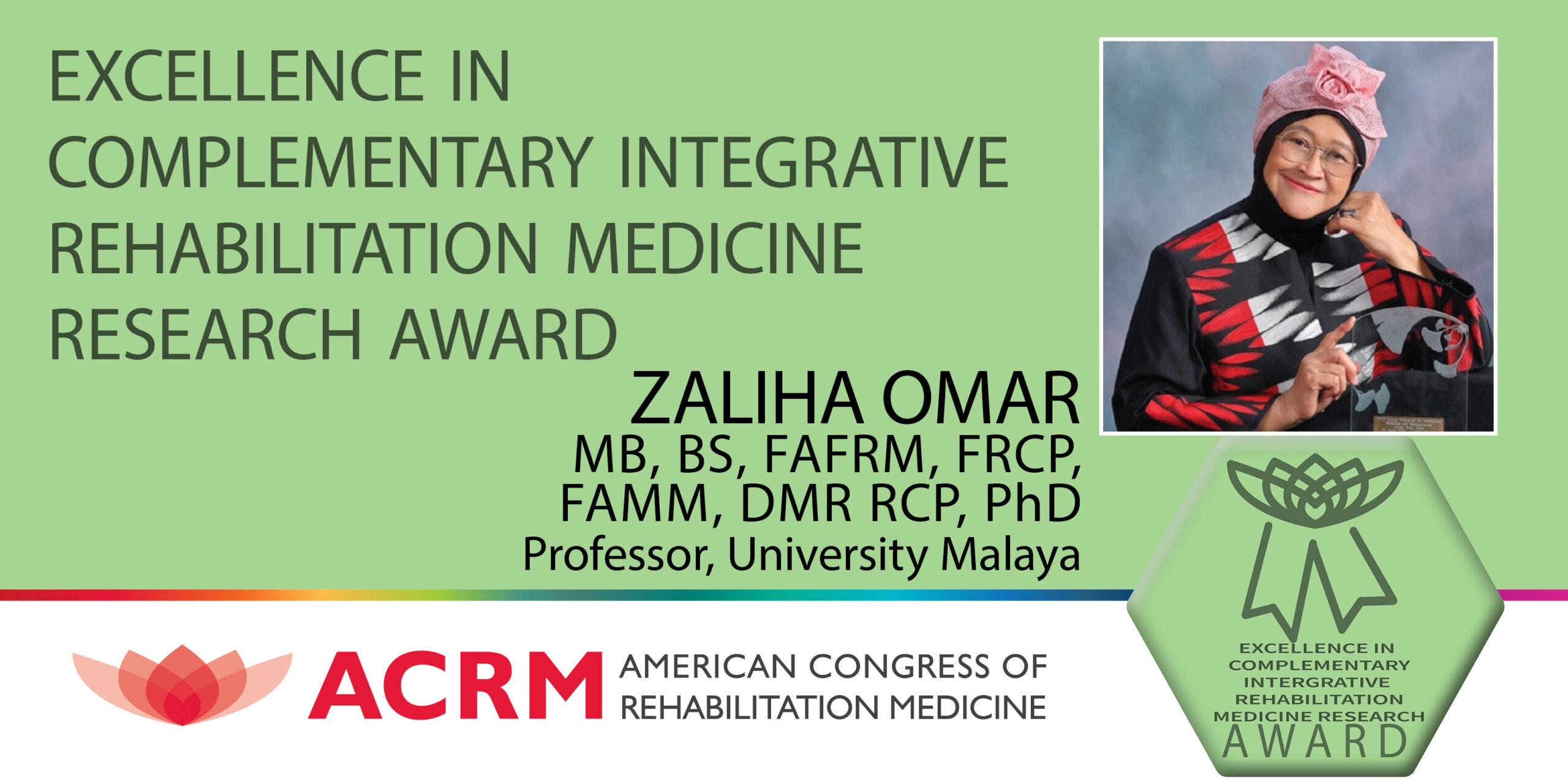 Zaliha Omar, MB, BS, FAFRM, FRCP, FAMM, DMR RCP, PhD will be awarded the Excellence in CIRM research award at the 2025 Annual Conference