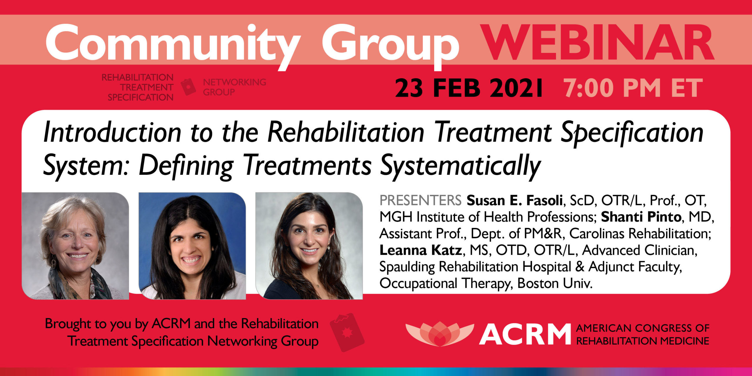 With guest speakers, Susan E. Fasoli, ScD, OTR/L, Shanti Pinto, MD, Leanna Katz, MS, OTD, OTR/L and moderator, Susan H. Lin, ScD, OTR/L, FAOTA, FACRM