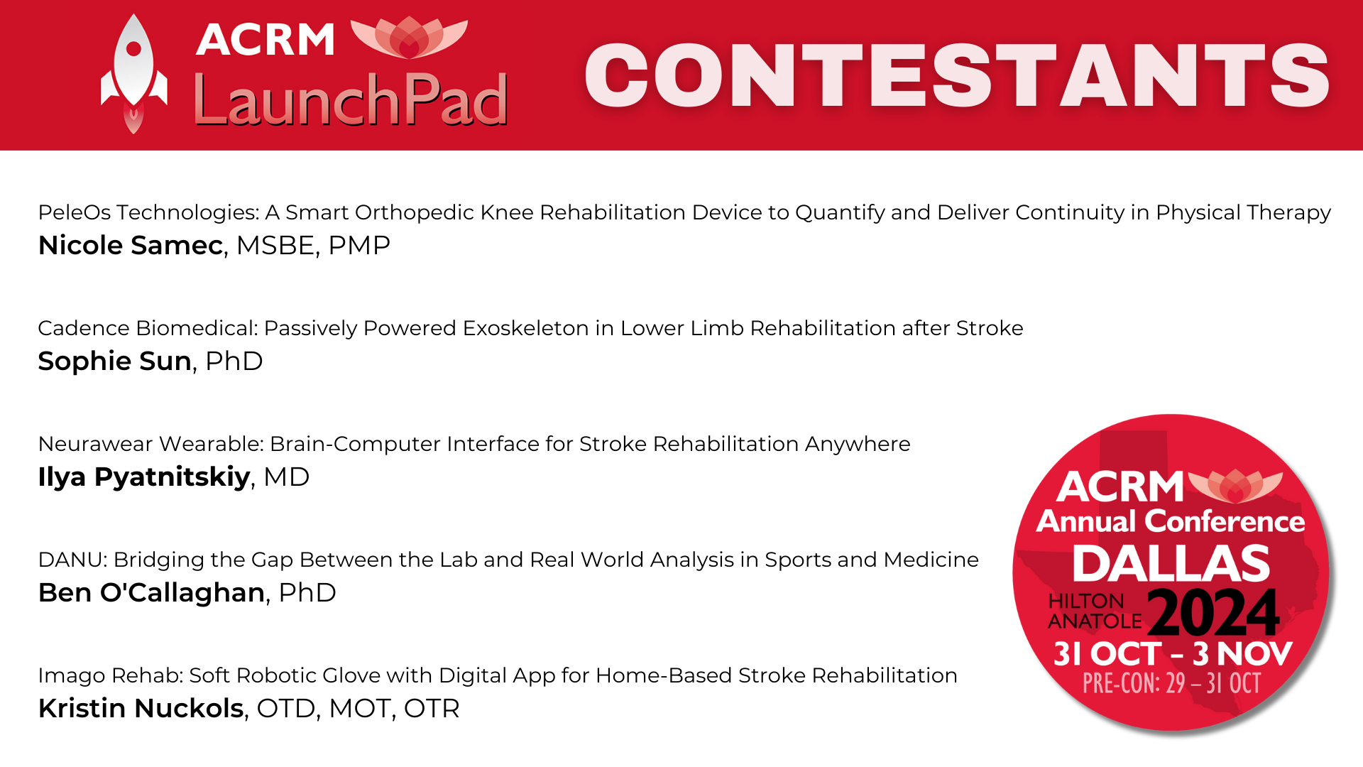 The ACRM Technology Networking Group is pleased to announce LaunchPad — an exciting opportunity to pitch your company or idea to a panel of rehab industry experts and an audience of clinicians, researchers, engineers, and decision-makers to receive market feedback and win prizes.