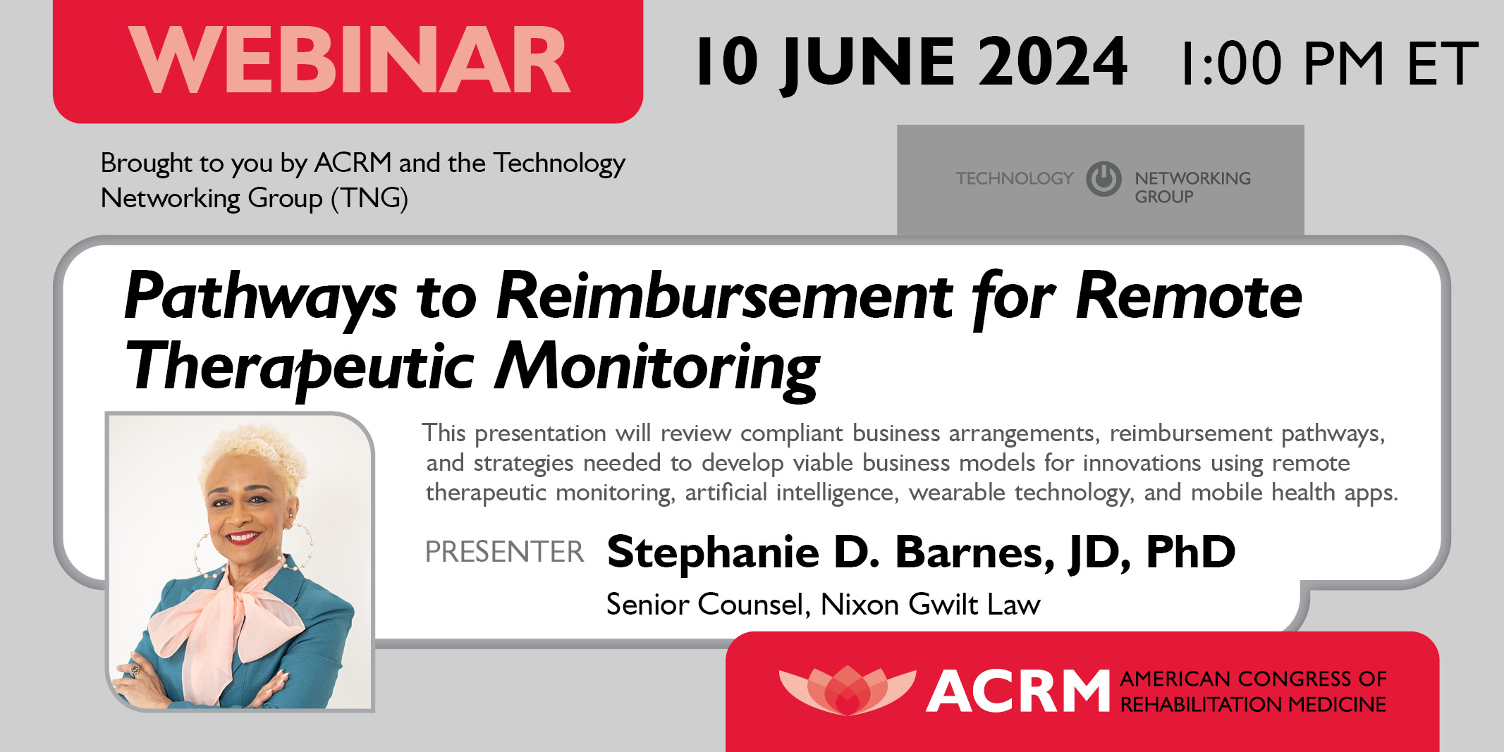 This presentation will review compliant business arrangements, reimbursement pathways, and strategies needed to develop viable business models for innovations using remote therapeutic monitoring, artificial intelligence, wearable technology, and mobile health apps. The presentation will also include an in-depth analysis of current opportunities and challenge to advancing the development and adoption of mobile health/rehabilitation innovations. Finally, the discussion will delve into practical considerations for operationalizing remote therapeutic monitoring services.