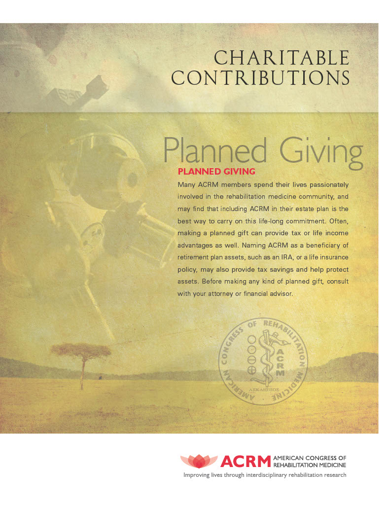 Create lasting impact by including ACRM in your estate plan. Many members choose to carry on their life-long commitment to rehabilitation medicine through planned giving.