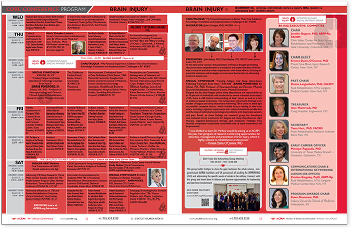 For specific BRAIN INJURY sessions and more details (including presenters, session descriptions and schedules) see the ACRM APP and the online program.