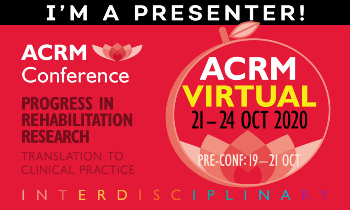 THANK YOU for submitting a proposal to present your research at the Virtual ACRM Annual Conference, Progress in Rehabilitation Research. The Program Committee is delighted to welcome you to the conference faculty. Please bookmark this page and check back frequently for presenter updates, deadline reminders and more.