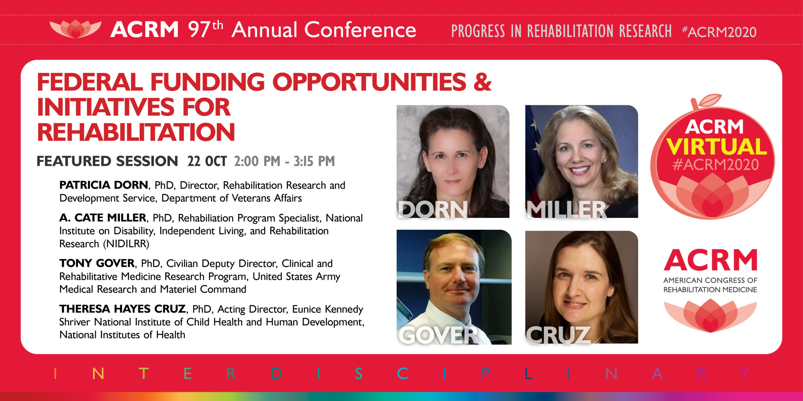 Join the leadership of the federal agencies who fund rehabilitation research for an overview of their programs, funding opportunities, and special initiatives. Learn about resources that can support research initiatives in various conditions. Discover training opportunities, fellowship awards, and other resources to help young investigators begin their research career. Get an inside look at the collaborative efforts between the agencies and give your feedback on where additional collaboration can spur the science supporting rehabilitation medicine.