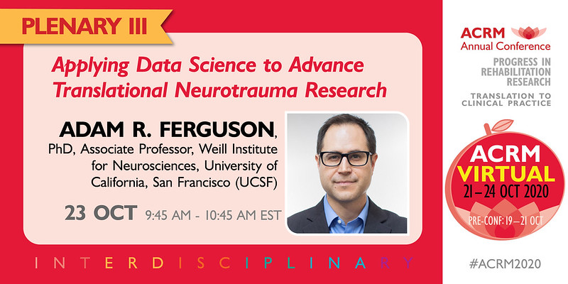 Dr. Adam Ferguson will share his innovative work at the interface of data science and neurotrauma, including VISION-SCI, a community data repository, that hosts subject-level data from over 4000 rodents with SCI and Open Data Commons for SCI (odc-sci.org) and TBI (odc-tbi.org), a cloud-based data infrastructure designed to accelerate progress in pre-clinical SCI and TBI research through data sharing and re-using. His current work in large-scale clinical projects will also be discussed, including a multicenter prospective Transforming Research and Clinical Knowledge in Traumatic Brain Injury (TRACK-TBI) and SCI (TRACK-SCI) studies, and TBI Endpoints Development (TED) Initiative.