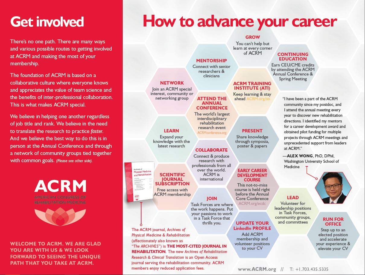 A: A wide variety of titles attend the ACRM Annual Conference — the attendee make-up includes a wonderful mix of leading researchers, clinicians, hospital administrators, industry influencers and passionate patients and caregivers. Anyone and everyone interested in the latest and greatest rehabilitation research should attend ACRM. Here are some general titles that we see most often: