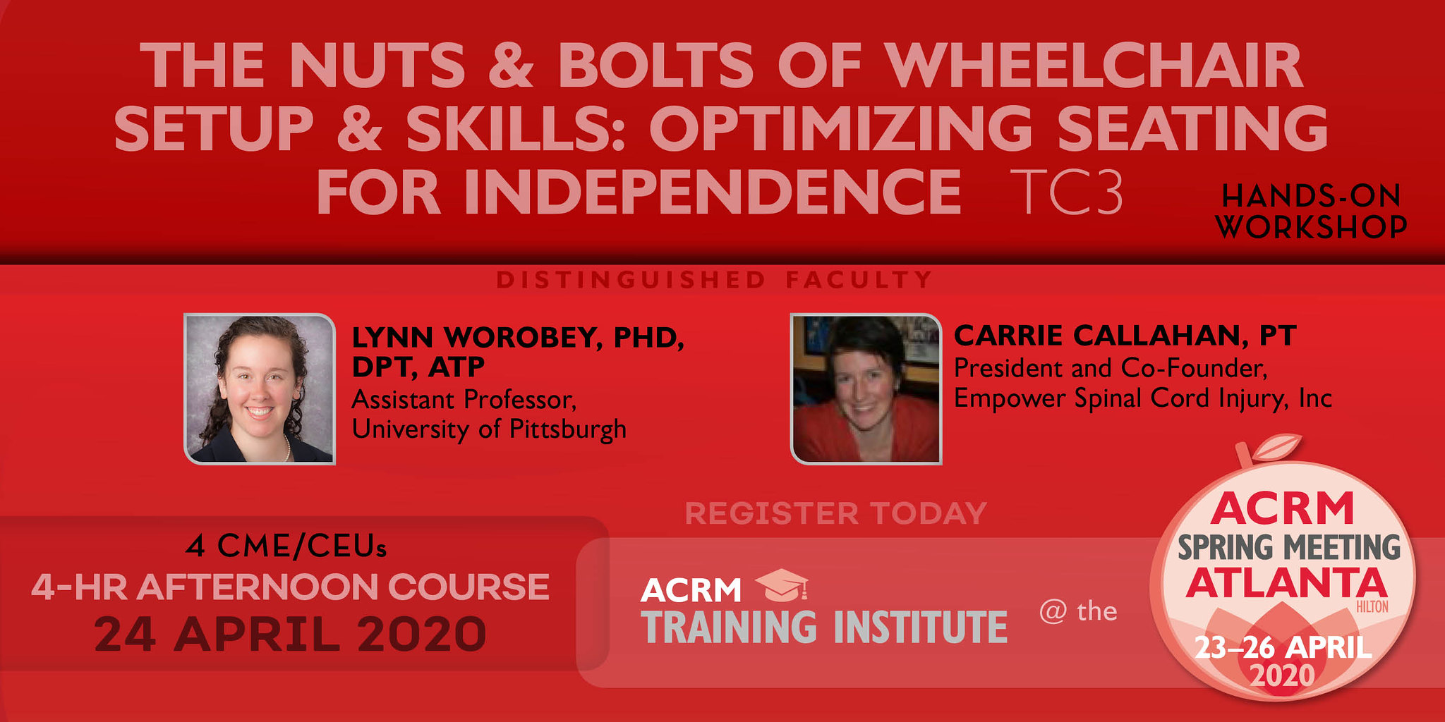 The wheelchair is one of the most enabling technologies a clinician can provide. However, without proper selection and setup, the positive impact on quality of life can be compromised. In this hands-on workshop, you will learn the evidence behind key wheelchair setup modifications and practice making these adjustments on ultra lightweight manual wheelchairs. Because wheelchair setup and wheelchair skills go hand-in-hand, we will follow adjustments with skills practice of wheelies and curbs to understand the impact of adjustments and improve clinician ability to teach these skills to patients and clients. Hands-on practice will be complemented by discussion of case examples.