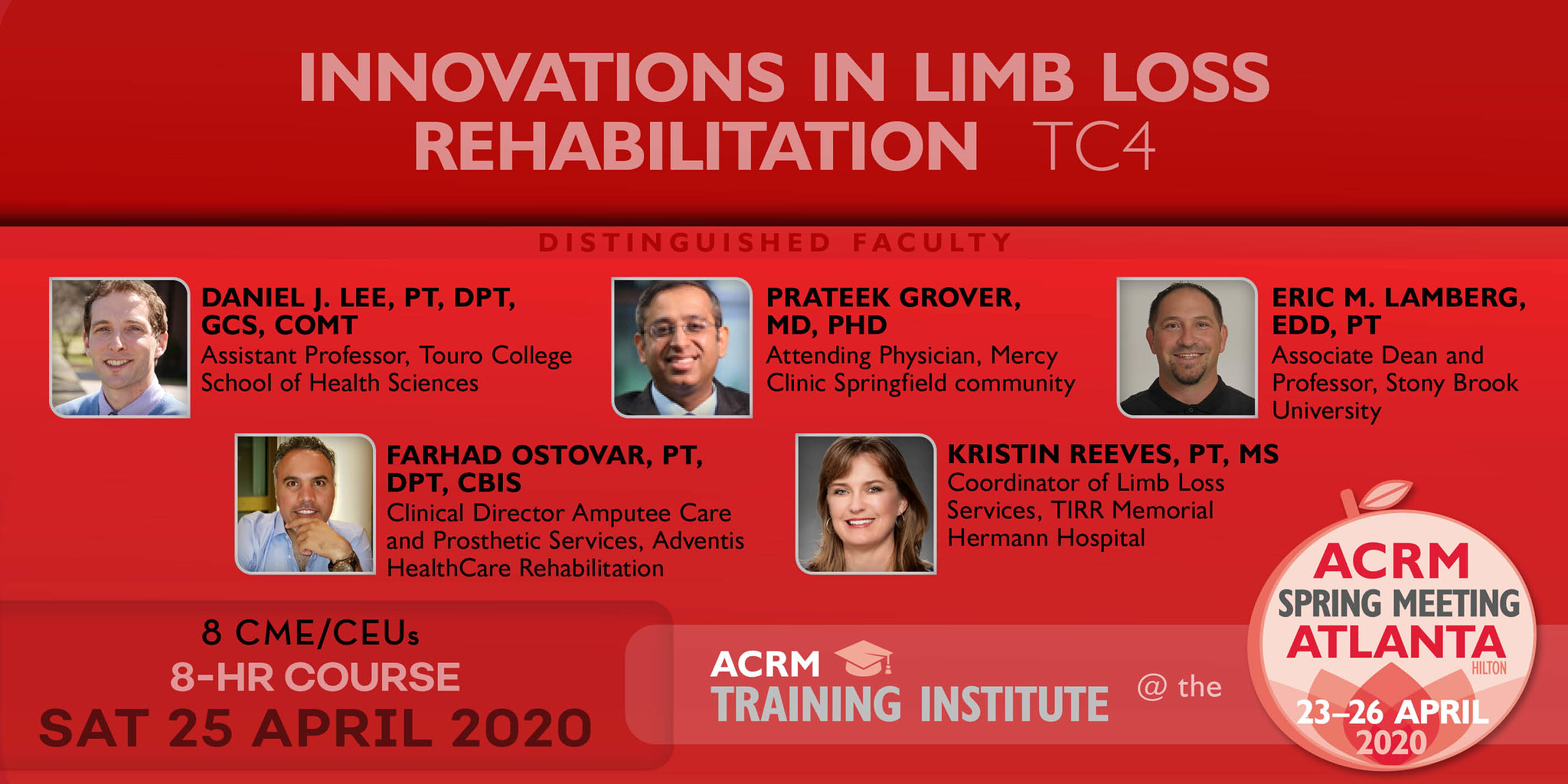 PRESENTER’S STATEMENT: “The presenters for this course are an ensemble of experts who have taught courses on limb loss throughout the country for many years. This is the beginning of what is intended to be a multi-part series playing out over the ACRM conferences for the next several years. By the end of the series you should be the “person” at your facility who is the benchmark for providing evidenced-based care.” —Daniel J. Le, PT, DPT, GCS, COMT