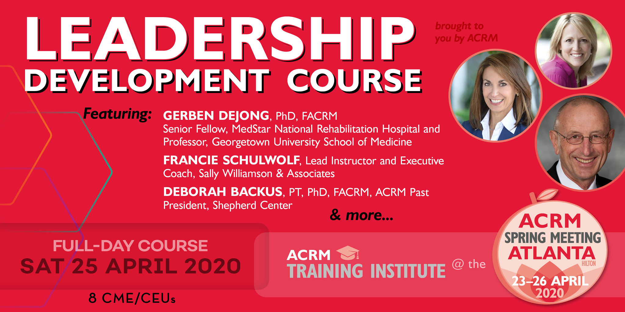 “Anyone who wants to learn how to be a more authentic, dynamic and effective leader in rehabilitation medicine needs to be at this course.” —Deborah Backus, PT, PhD, FACRM, ACRM Past President, Shepherd Center >>>