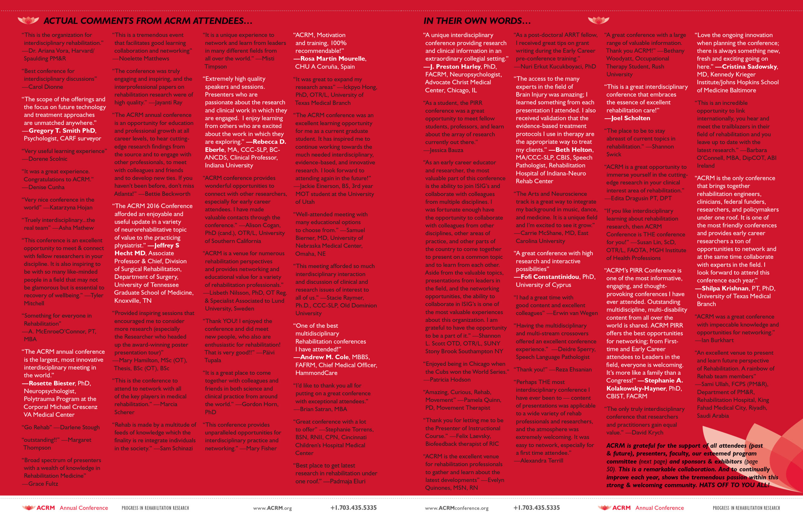 ACRM is a great interdisciplinary conference that embraces the essence of excellent rehabilitation care!