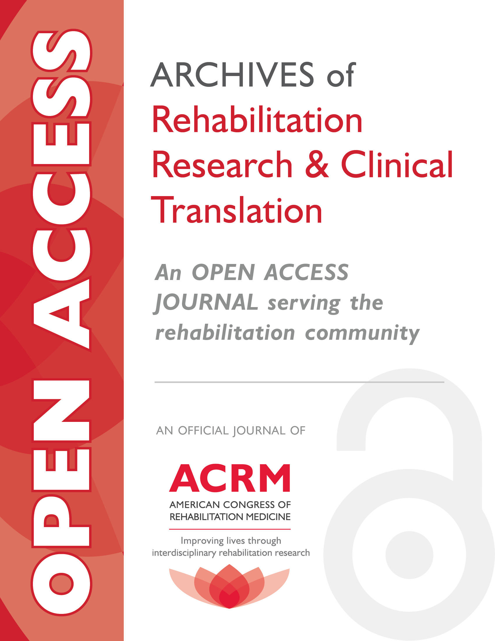 The Archives of Rehabilitation Research and Clinical Translation is an official journal of the American Congress of Rehabilitation Medicine, an organization focused on improving lives through interdisciplinary rehabilitation research. Like its companion journal, the Archives of Physical Medicine and Rehabilitation, it publishes original, peer-reviewed research and systematic and other reviews covering important trends and developments in rehabilitation with the goal of advancing the health of persons with chronic diseases and disability. It will also consider exceptional case reports as well as rehabilitation-related images for publication. In addition, its goal is, through its open access nature, to expedite the transfer of quality rehabilitation research to all members of our field.